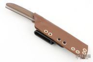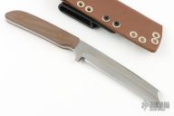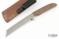 This knife by A2D Mercantile features a satin finished blade with a full tang construction, .207" blade stock, .805" blade depth.  The handle has pinned g10 covers. Comes with a Kydex sheath. Has some scuffs and scratches, otherwise great condition otherwise.