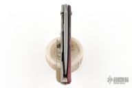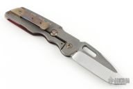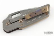 This Mark 1 Flipper by A2D Mercantile features a two-tone satin finish blade with thumbhole and flipper. The handle has an acid/tumble finish titanium frame with micarta cover, and satin anodized titanium tip up clip. Nice detent, lockup and blade seating. Has a couple light scuffs and scratches, excellent condition otherwise. Dated 2019.