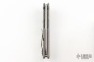 This Framelock by A2D satin finished blade with thumbhole and flipper. The handle has a bead blast finish titanium frame and satin titanium tip up clip. Nice detent, lockup and blade seating. Has some light scuffs and scratches, great condition otherwise.
