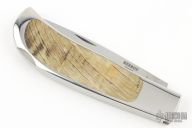 This Lockback by George Herron features a mirror polished drop point blade with a single nail nick.  The handle features a mirror polished stainless steel frame with sheep's horn inlays.  Comes with a small pouch. Has some very fine finishing scratches. Excellent Condition.