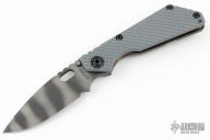 This SNG framelock folder by Mick Strider features a tiger stripe blade and a dimple pattern gray G-10 and flamed titanium frame and tip up titanium clip. Includes a "Lock Bar Stabilizer" for maximum reverse lock retention. Nice detent, lockup and blade seating. Excellent condition.
