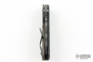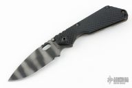 This SNG framelock folder by Mick Strider features a tiger stripe drop point blade and a dimple pattern black G-10 and flamed titanium frame and tip up titanium clip. Includes a "Lock Bar Stabilizer" for maximum reverse lock retention. Nice detent, lockup and blade seating. Excellent condition.