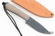 "In the Chris Reeve Knives tradition of simple, elegant and functional, the Nyala is a modern version of a classic skinner. Featuring the utility of a drop point and enough belly for skinning, this all-purpose knife will prove useful in a multitude of applications. The integral handle and black KG Gun Kote blade of CPM S35VN is sturdy and practical - spiral and lineal grooves in the natural canvas micarta handle provide positive grip - good knife control is provided by serrations on the spine. The high quality sheath is made of leather treated to be water resistant." Includes a brown leather sheath and original box and paperwork dated November 16, 2020. Excellent Condition.
