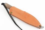 "In the Chris Reeve Knives tradition of simple, elegant and functional, the Nyala is a modern version of a classic skinner. Featuring the utility of a drop point and enough belly for skinning, this all-purpose knife will prove useful in a multitude of applications. The integral handle and blade of CPM S35VN is sturdy and practical - spiral and lineal grooves in the micarta handle provide positive grip - good knife control is provided by serrations on the spine. The high quality sheath is made of leather treated to be water-resistant." Includes original brown leather sheath and box. Papers dated SEPT 21, 2016. Excellent Condition.