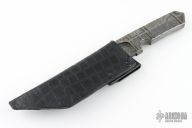 This knife by ITAC features a Damascus tanto blade with .309" blade stock and 1.74" blade depth, full integral construction. Comes with a leather sheath and zippered case. Excellent condition.