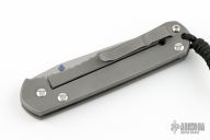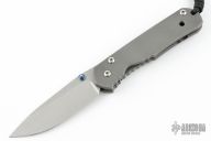 This large Regular Sebenza by Chris Reeve Knives features a tumble finish blade and bead blast titanium frame. Anodized titanium thumb stud and barrel spacer. Lanyard hole in pommel. Nice detent, lockup and blade seating. Has scuffs/scratches otherwise good condition.