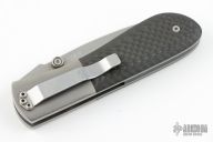 This model 21 by Kit Carson features a tumble finished wharncliffe blade with notched thumbrest and dual thumbstuds. The handle has finely bead blasted titanium bolsters, carbon fiber scales and backspacer, bead blasted titanium liners, stainless steel tip down pocket clip. Nice detent and blade seating. Has a couple light scuffs, excellent condition otherwise.