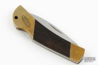 This lockback folder by Case knives features a satin finished clip point blade with nail nick. The handle has brass bolsters, front and rear, integral brass liners, and palmwood scales. Has some light scratches, and patina but otherwise the knife is in excellent condition for its age.