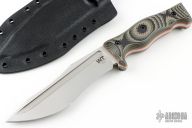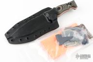 This Little Evil Fighter by Work Tuff Gear features a rugged finished K329 Steel blade with .189" blade stock and 1.568" blade depth, full tang construction with Jungle camo G-10 scales and orange liners. Comes with original box, sheath and extras. 09/2024 2nd Production. New from maker!