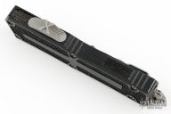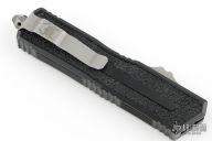 This Scarab II Gen III by Microtech features an apocalyptic finished blade with fullers. The handle has a black aluminum handle with non-slip inserts, a single glass breaker and tip down stainless steel clip. Comes with original box and papers. Has scuffs and scratches, dings, good user condition.