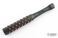 The RMJ Tinysubo is a bite sized take on Ryan's larger Tetsubos but for all your small format bashin' and general ass whoopin' needs! Each Tinysubo is coming in at over 9 inches of minute mayhem! These Tinysubos are turned from hickory at the Gold Point Forge, with an eight-sided design. The end flares out into a nice palm swell making sure your grip don't slip when laying down the miniature beatdown! The body features 60 inset copper rivets just begging to put adequately sized dents in stuff. Ryan then gave the whole piece a stained finish. Sized to throw in a back pocket, bag, or throw it on your desk for the ultimate status symbol.