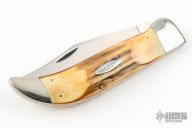 This Razor Edge 5172 SSP from Case Knives features a clip point satin blade with nail nick. The handle is comprised of nickel silver bolsters and butt cap with stag covers over brass liners and stainless steel back spring. Comes with original box and papers. Has some scratches and patina, excellent condition otherwise.