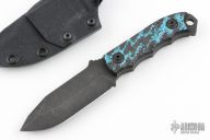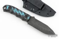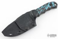 This Disaster Cub by Half Face Blades features a dark stonewashed drop point blade with a full tang construction, .147" Blade Stock, 1.102" blade depth.  The handle has contoured black/blue carbon fiber scales.  Comes with a Kydex sheath. Excellent condition.