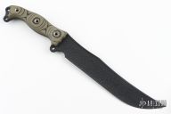 This Nano Fusion Warpatch by Busse features a black coated blade with .226" blade thickness and 1.715" blade depth, full tang construction. The handle has hand shaped black/green G-10 scales. New from maker!