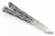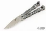 Spyderco's original SmallFly was a uniquely different "spin" on the balisong, or Filipino butterfly knife. Now this remarkable design is back with this special limited featuring full-flat-ground, drop-point blade profile crafted from CPM-Cru-Wear. Like the original, it features skeletonized twin handles with full stainless steel liners and peel-ply-textured Gray G-10 scales. The Round Holes at the butt end of both handles reflect Spyderco's iconic trademark and help achieve optimal balance for high-speed manipulation. A spring-loaded latch attached to the "free" handle secures the handles together in the closed position, while the removable wire pocket clip may be attached to either side of both handles as both a carry option and tactile index.