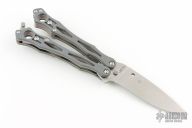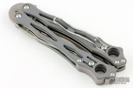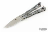 Spyderco's original SmallFly was a uniquely different "spin" on the balisong, or Filipino butterfly knife. Now this remarkable design is back with this special limited featuring full-flat-ground, drop-point blade profile crafted from CPM-Cru-Wear. Like the original, it features skeletonized twin handles with full stainless steel liners and peel-ply-textured Gray G-10 scales. The Round Holes at the butt end of both handles reflect Spyderco's iconic trademark and help achieve optimal balance for high-speed manipulation. A spring-loaded latch attached to the "free" handle secures the handles together in the closed position, while the removable wire pocket clip may be attached to either side of both handles as both a carry option and tactile index.
