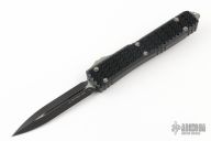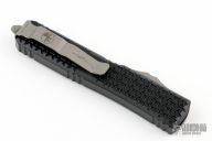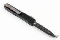This Ultratech Hellhound by Microtech Knives features a two-tone D/E black DLC blade with notched thumbrest and fullers, false top edge. The handle has a Tri-Grip black aluminum frame with tip down gun metal stainless steel clip, gun metal hardware, gun metal thumbslide. Comes with original box and papers. Excellent condition. Dated 01/2023 and s/n 069