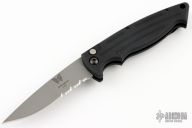 This Mini Reflex by Benchmade features a partially serrated blade and a black aluminum handle with black stainless steel tip up clip, lanyard hole at the butt and safety on the spine. Excellent condition. Comes with original box and papers.