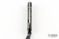 This Small Inkosi Insingo by Chris Reeve Knives features a tumble finished blade with notched thumb rest and dual anodized titanium thumb stud. The handle is comprised of a carbon fiber and bead blasted titanium frame with matching tip up clip over a single anodized barrel spacer and lanyard pin. Comes with original box and papers dated November 15, 2018. This knife was a Knife Art Exclusive. Has a couple light scuffs, otherwise excellent condition. Comes fitted with a filler tab, and also includes the original clip.