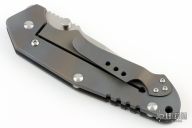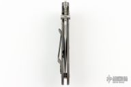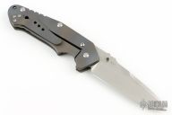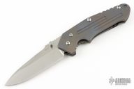 This Pocket Rocket from Shane Sibert was from the very first run and is #006. According to our sales records this was probably made around 2004. It has a satin finished blade with false top edge, notched thumbrest and dual thumbstuds. The handle has a bead blasted titanium frame with tip up titanium clip. Nice detent, lockup and blade seating. Excellent condition. #006