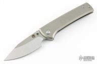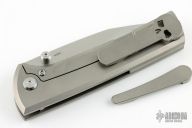 This Chaves Scapegoat features a satin finished drop point blade with the Chaves logo and dual thumbstuds. The handle has a stonewashed titanium frame and a matching skull pocket clip. Includes an interchangeable titanium clip. Comes with original box. Excellent condition.