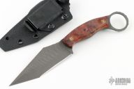 This Ringed Tac Tanto by Half Face blades features an acid/tumble finished blade with textured thumb rest. The handle has black G-10 liners, mosaic pins and wood scales. Comes with kydex sheath with clip. Excellent Condition.