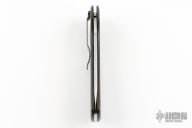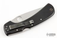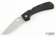 This C16PS Wayne Goddard design features a satin finished partially serrated blade with thumbhole. The handle has black linen micarta scales, tip down black stainless steel clip and a stainless steel backspacer and lockbar, lanyard hole at the butt. Has scuffs and scratches, good user condition.