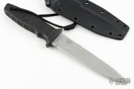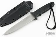 This Terzuola designed M-30A1 fixed blade has a bead blasted ATS-34 spear point blade with false top edge, notched spine, and hidden tang. 3/16" blade stock, 1-1/8" depth. Handle is "knurled" Zytel with lanyard hole. Comes with a kydex sheath and original box. Has scuffs and scratches, great user condition otherwise.