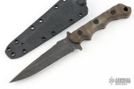 The Ground Branch Tactical Knife (GBTK) is a limited edition collaboration piece by Joseph Teti and Gahagan Customs.  The GBTK is made of .165" 80CRV2 and is a sturdy, reliable and purpose driven blade, designed for the toughest everyday carry applications.  This design emphasizes durability and functionality, made with the military and law enforcement use in mind.  The blade comes with a black Kydex retention sheath.