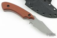 The Lowlander was designed as a fixed utilitarian knife for use in bushcraft situations and as an every day carry (EDC).  Its versatile design makes this utility knife one that can be carried daily to manage any task and is perfect for outdoor use such as camping and hunting.  The blade is made of S35VN steel which lends itself to less maintaince in these outdoor situations.  The canvas micarta handle scales are comfortable in your hand and feature a blasted finish to provide extra grip. The blades comes with a black Kydex retention sheath and belt attachment that is MOLLE compatible.