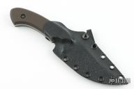 The Lowlander was designed as a fixed utilitarian knife for use in bushcraft situations and as an every day carry (EDC).  Its versatile design makes this utility knife one that can be carried daily to manage any task and is perfect for outdoor use such as camping and hunting.  The blade is made of S35VN steel which lends itself to less maintaince in these outdoor situations.  The canvas micarta handle scales are comfortable in your hand and feature a blasted finish to provide extra grip. The blades comes with a black Kydex retention sheath and belt attachment that is MOLLE compatible.