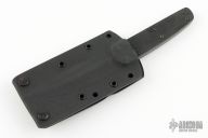 This Kwaito from Bud Nealy features a polished upswept San-Mai blade with serrated top edge, .112" blade stock and .958" blade depth. The handle is comprised of textured black G10 over full tang construction. Comes with kydex sheath, attachments and papers. Numbered 4982 First Edition. Has some light scuffs, great condition otherwise.