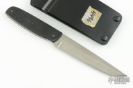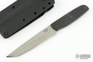 This Aikuchi by Bud Nealy features a hand rub satin finished tanto style blade with .092" blade stock and .997" blade depth. The handle is comprised of black G-10 scales over full tang construction. Includes original paperwork and MCS Sheath system. Excellent condition.