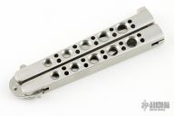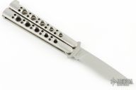 This vintage Model 35S Balisong from Benchmade features a polished drop point blade with swedeand partial serrations . The handle is comprised of integral steel construction. T latch on pommel. Comes with Bali-Song nylon belt sheath. Has a couple light scratches, excellent condition otherwise.