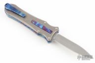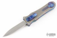 This knife is a Deadlock Model B. It has a double edged stonewashed blade. The handle has a stonewashed titanium and anodized titanium frame with a tip down anodized spring clip. The thumb slide on the handle is also titanium and handle has titanium overlays. Grant and Gavin Hawk set out to create a double action OTF with no blade play.... They did it, NO blade play. Excellent condition. Comes with original accessories and zipper case. Has a couple light scratches, excellent condition otherwise.