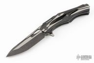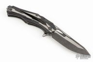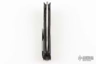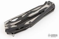 This DCPT-1 by Custom Knife Factory features a two-tone dark stonewashed blade with notched thumbrest and flipper. The handle has titanium scales, dark stonewashed titanium liners and backspacer and a matching tip up pocket clip. Nice detent, lockup and blade seating. Rides on bearings. Comes with velcro case, extra hardware, and COA dated 02-20. Has a couple light scratches, otherwise Excellent condition.
