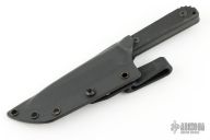 This Tricon Fixed Blade from Strider Knives features a tiger striped drop point blade with notched thumbrest. .194" Blade Stock. 1.037" Blade Depth. The handle has textured black G10 scales with lanyard hole over full tang construction. Includes kydex sheath. Excellent condition.