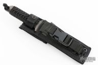 In 1988, he began making specialized knives for use by the military. This turned out to be fortunate turn of events, both for Mick and for the knife using world at large. Mick’s approach was to not get burdened by the weight of past designs. He started with a tabula rasa, a clean slate, informed only by his own experiences and knowledge of what a soldier needed in a knife. The knives he made didn’t look like the hunter-inspired knives seen in most PXs; instead they were almost brutish in their functionality: beefy, solid, and with unbreakable ¼” stock full tangs. These knives were the first indication of his innovative approach: in addition to their utilitarian design, the knives carried a subdued finish and subdued sheaths. No one carrying a Strider knife was going to be spotted because of sunlight glinting off of polished steel or a glossy leather sheath. Soldiers, policemen, and other men going into harm’s way couldn’t buy them fast enough. Mick sampled some good ideas, but made them great. For instance, he was not the first to wrap a knife handle with paracord, but he was the first to do it in a way that was tough enough for sustained infantry use. His knife line grew over the following years to include different varieties of fixed blades, all distinctive and many with specialized uses. But constant in all of them was a disregard for convention, and a desire to try new ideas. An example of this was the Ajax – it featured a very wide blade surface clearly designed to inflict damage. It drew on the weapons carried by Roman legionnaires, yet was modern and usable in the 21stCentury battlefield. Mick also worked on his technical skills, always striving to become better at the physical craft. At the 2002 Blade Show, a group of the best tactical knifemakers in the country decided to compete with each other to produce the most innovative and interesting fixed “battle blade” at the show. Mick’s entry, an incredible integral knife made out of ½” titanium stock with a zippered composite blade, gorgeous handles, and integral guard was the unanimous winner, and effectively retired the competition.