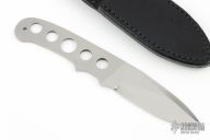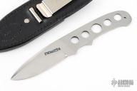 The Triathlete is a non-catalog knife by Randall Made Knives. It has a satin finished blade with false top edge, .148" blade stock and .989" blade depth, full tapered tang construction. Bead blast handle. Comes with black leather sheath with retention snap and belt clip. Has a couple light scratches, excellent condition otherwise.
