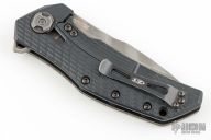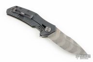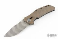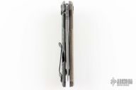 The ZT 0308BKLTS is a beefy tactical folder with everything you'd expect from a ZT going for it. It's made of a black G-10 handle with a titanium frame lock, and DLC coating. The blade is made of CPM-20CV steel with black oxide BlackWash, and is finished with tiger stripes. The handle has texture that provides a sure grip, but won't chew up your hand or your pocket. The profile of the handle and blade facilitate comfortable ergonomics and safe hard use. s/n 5707. Comes with original box and papers. Has a some light scuffs, otherwise excellent condition. Comes with original black G-10 scale, and is currently wearing a green canvas micarta scale.