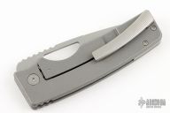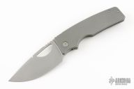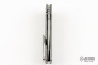 This Roosevelt XL by the OZ Machine Company features a tumbled Magnacut blade with thumbhole and notched thumbrest. The handle features a milled stonewashed titanium frame with a titanium backspacer and tip up pocket clip with hidden screws. Includes original velcro case and papers dated 9-7-24 and s/n 0345. Excellent condition.