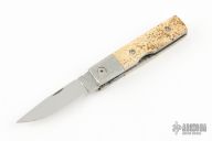 I'm a twice wounded Vietnam vet who grew up under a father who was a machinist and compulsive fabricator and as they say, "the nut doesn't fall far from the tree". I started making knives in 1993 as a natural progression from building muzzle loading rifles, with big blades and tomahawks being part of the black powder culture and charisma. Before long, I discovered I loved folders more then I did flintlocks and had the extreme good fortune to meet two great people and great talents, Butch and Rainy Vallotton. They helped me as I struggled along and were even generous enough to share their table with me at my first OKCA show here in Oregon. With their inspiration, I built mostly autos until 2008 when Vietnam caught up with me and I couldn't handle the big crowds at the shows anymore. In the spring of 2018 however, the bug re-bit me and now I find it therapeutic to be in the shop or out on the hydraulic press. I enjoy forging my own Damascus and experimenting with my own patterns. My long term plans are to return to what I love doing, building one of a kind folders... one at a time. God has been good to me.