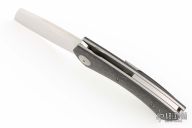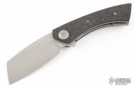 This Production Opiate Mini by Black Snow Customs features a hand rub satin finished blade with notched flipper. The handle has marble carbon fiber scales with bead blasted titanium liners and tip up clip with hidden screws, titanium backspacer. Rides on bearings, nice detent, lockup and blade seating.  Comes with original zippered case and box.  Excellent condition.