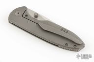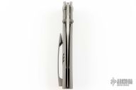 This Production Fuse by Jonas Iglesias features a satin finished blade with dual thumbstuds. The handle has a bead blasted titanium frame and tip up clip with hidden screws, notched titanium backspacer. Rides on bearings, nice detent, lockup and blade seating. Comes with a zippered case and box. Has a couple scuffs, otherwise excellent condition.
