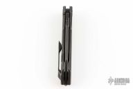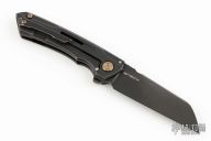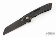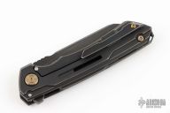 This Mini Buster has a darkened titanium handle and a black coated blade.