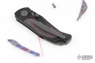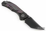 Grace comes in both inlay and non-inlay versions. This particular configuration features purple haze fat carbon inlays, black handles, and a hand ground belt satin Bohler M390 blade. Expertly executed with precision by Reate Knives.