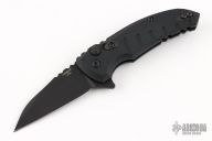 This model of the Hogue X1 Microflip sports a black wharncliffe blade with a black aluminum handle.