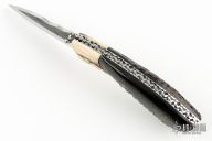 John Thita knives are made by a team of 4 longtime knife makers from Uthai Thaini province of Thailand supervised by Suchat Jangtanong who is one of the world's premier knifemakers. John Thita is a talented knifemaker from Thailand, known for his high-quality custom knives. He is part of a five-person knife making team called Thita, which means "strong and stable" in Thai. The team is based in the Uthai Thani province, about 200 kilometers from Bangkok. John Thita specializes in creating knives from Damascus steel with presentation-grade handle materials. Many of his knives feature a unique assisted opening mechanism and meticulously-carved scrimshaw designs. His work is highly regarded and is sold through various custom knife dealers