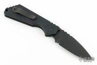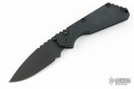 This Pro-Strider SNG by Pro-Tech and Strider Knives features a black blade with notched thumbrest. The handle has a black aluminum frame with black hardware and deep carry black stainless steel tip up clip.  There is a tritium lantern inlaid into the push button. Comes with original box and papers. Excellent condition, trit appears burnt out.