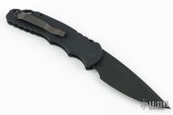 This Tactical Response 4 by Pro-Tech has a black blade with a plain edge, and a black aluminum handle. Black stainless steel clip. Steel glass breaker. Secondary safety switch. Comes with original box, pouch and papers. Has a couple light scuffs, otherwise Excellent Condition.